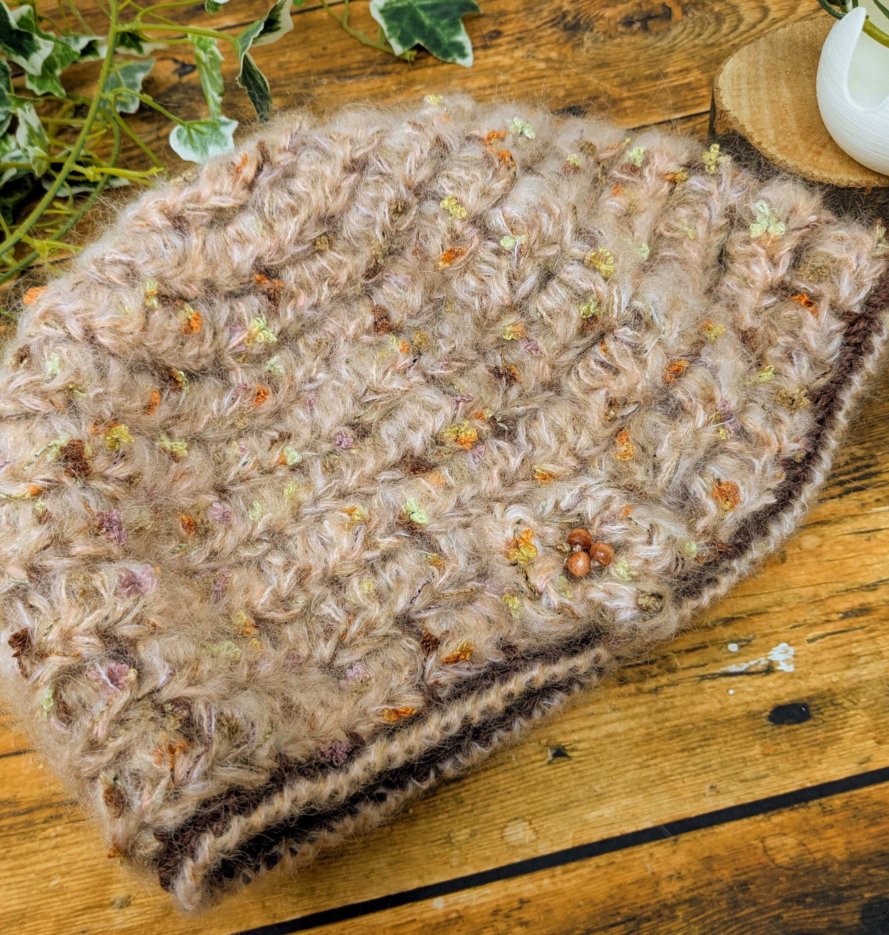 ピンクベージュのモヘア糸をメインに、
