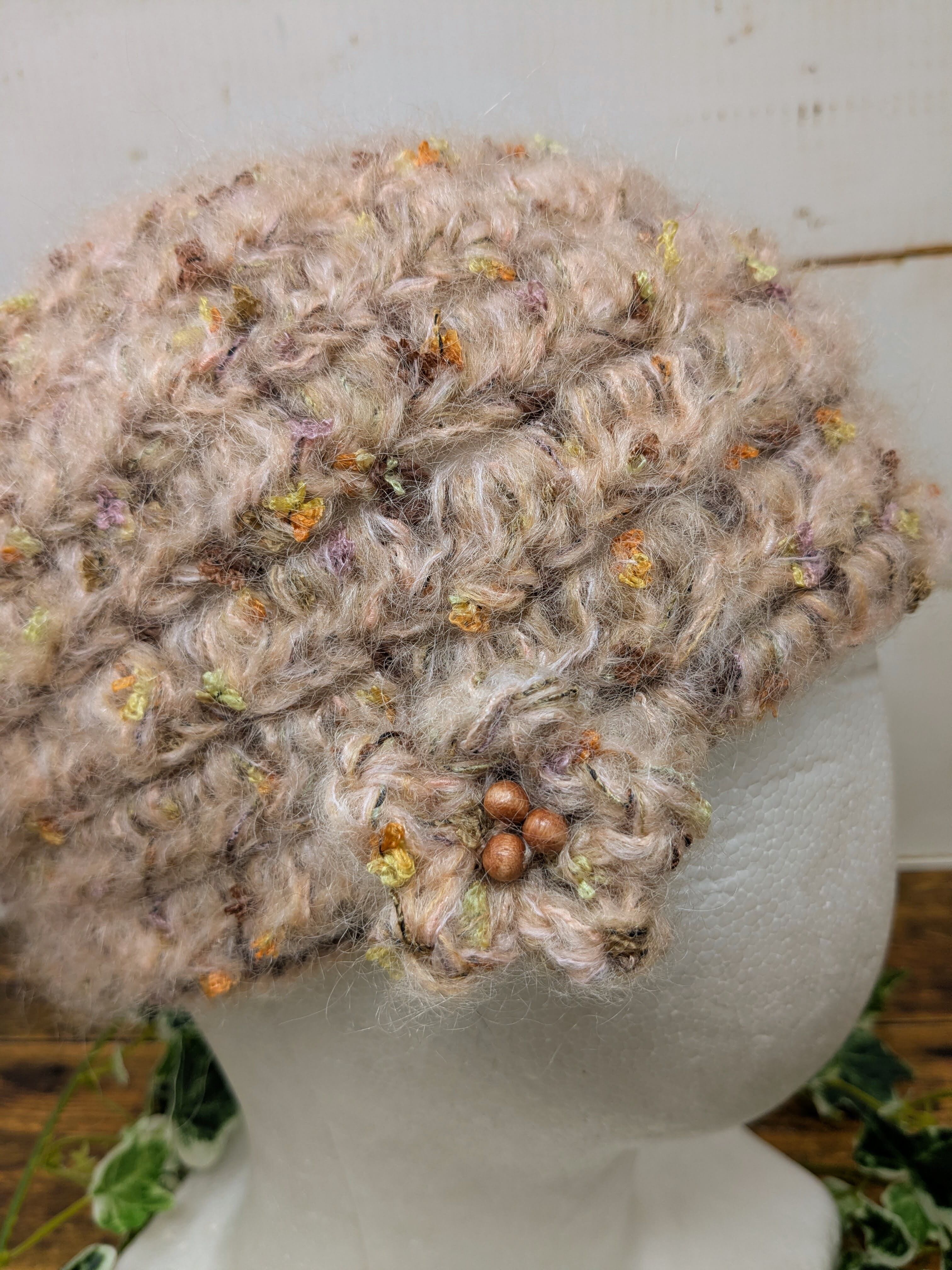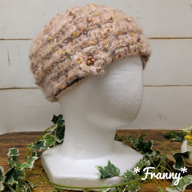 ふんわりモヘアとファンシーヤーンの帽子(ピンクベージュ)
