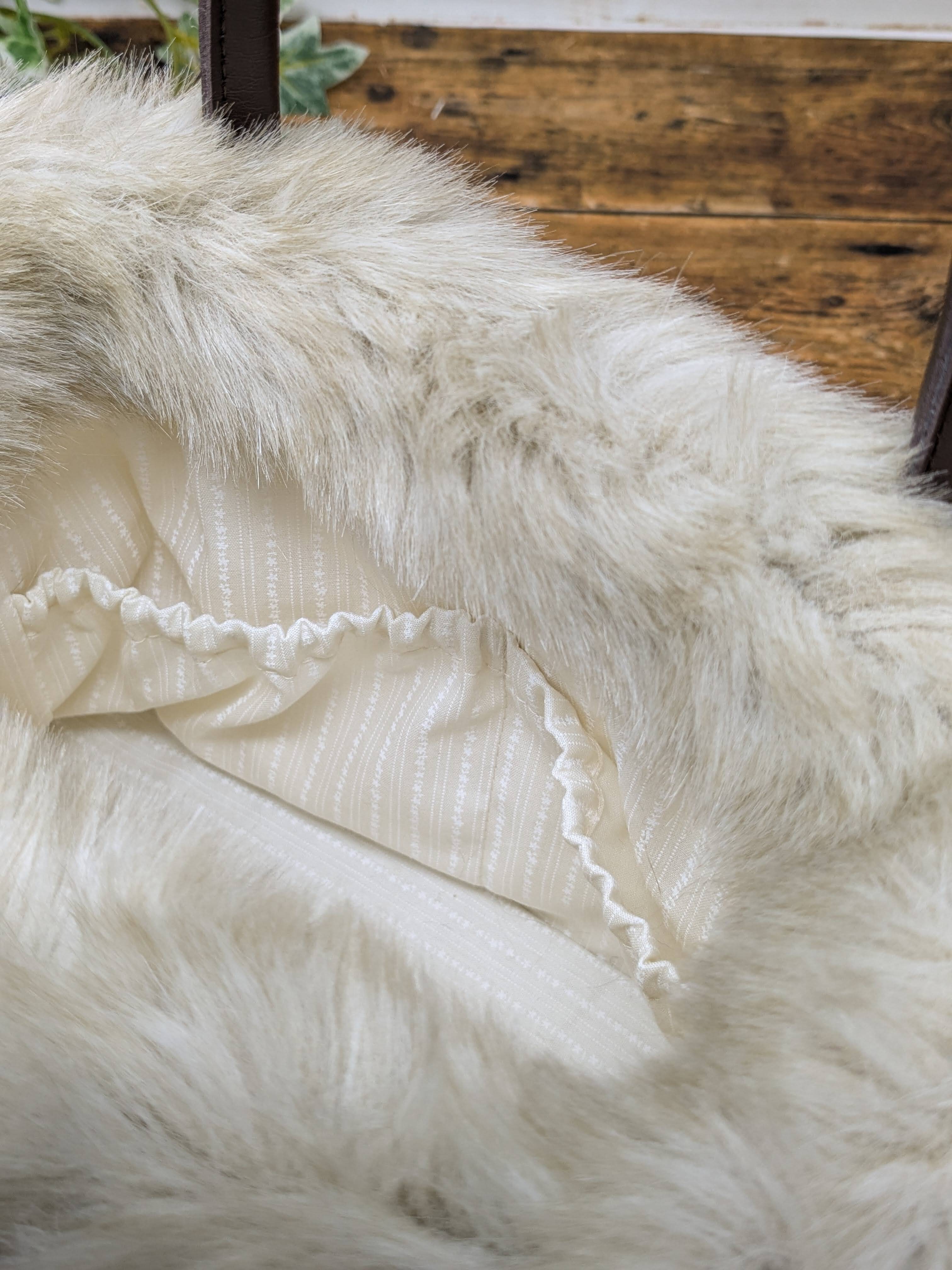 太糸をざっくり手編みしたアラン模様編に、上質のフェイクファーをたっぷりあしらった