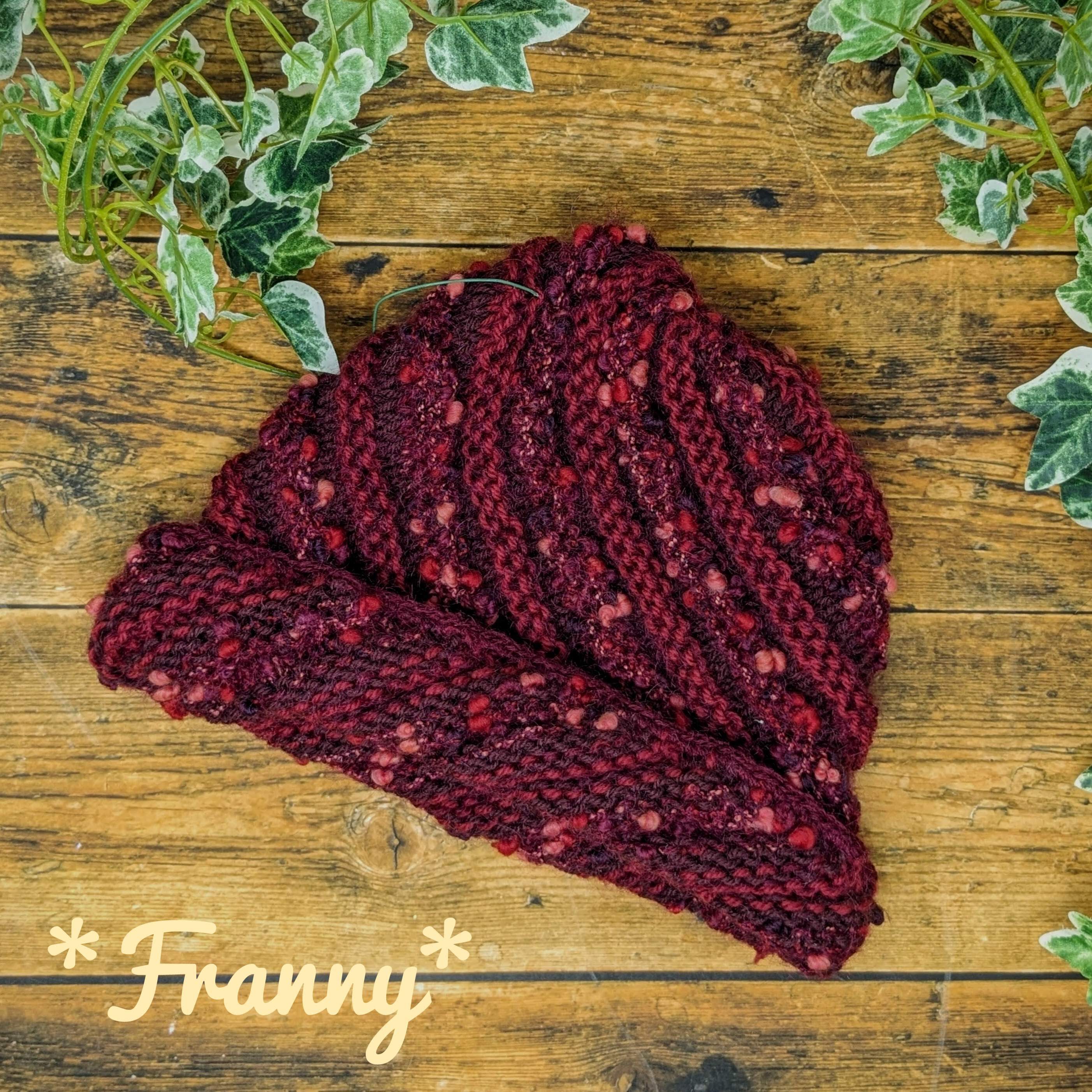 ふんわり軽い、斜めボーダーニット帽子(ワインレッド)